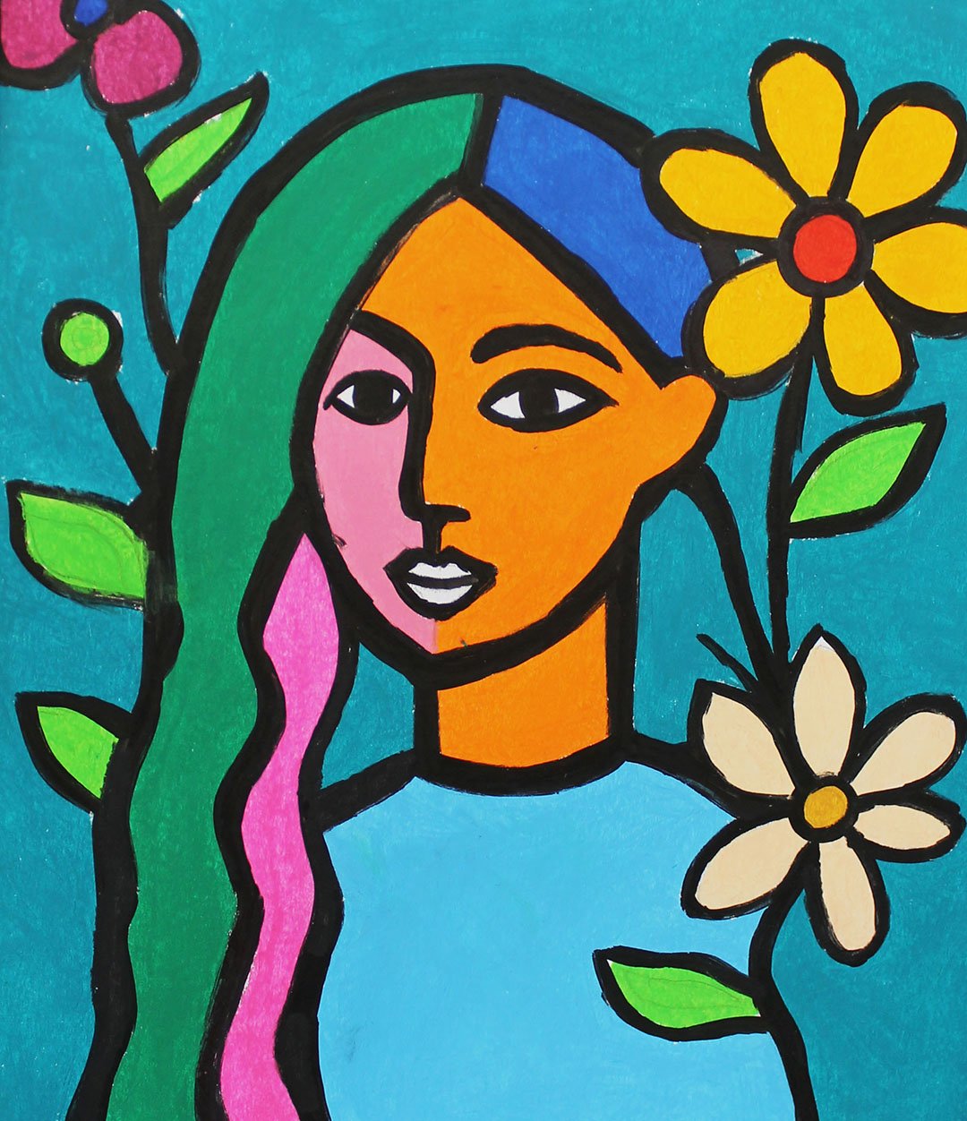 Ink and paint stick on paper