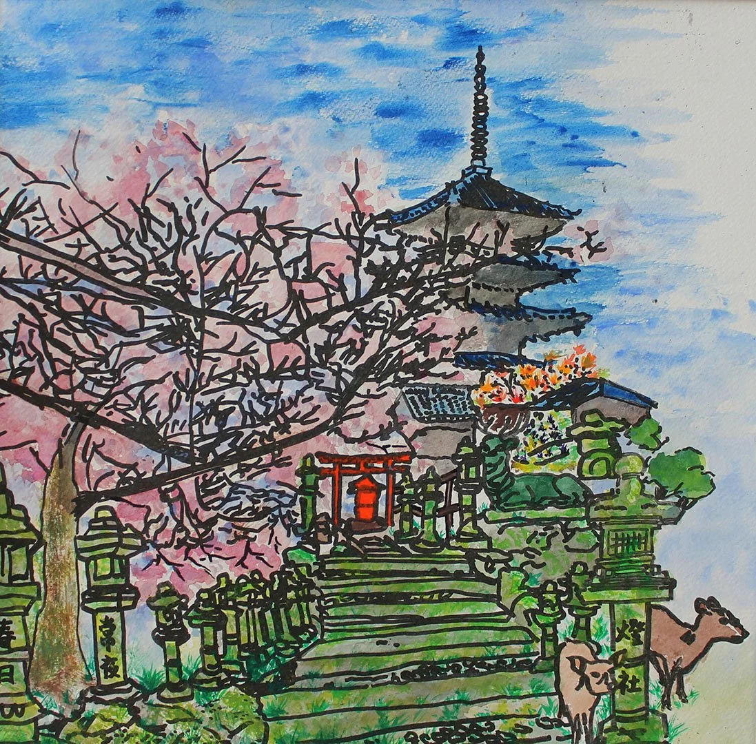 My artistic intention was to present artwork that communicated the harmony between nature and human creativity, showcasing the beauty of Japanese landscapes, traditional buildings, and cultural elements. I achieved this by designing a series of artworks that capture the lush greenery of temple pathways, moss-covered stone lanterns, and the elegance of traditional pagodas surrounded by cherry blossoms. Together, these scenes highlight the way Japanese culture seamlessly blends architectural craftsmanship with the natural environment, creating a sense of peace, balance, and timeless beauty.
