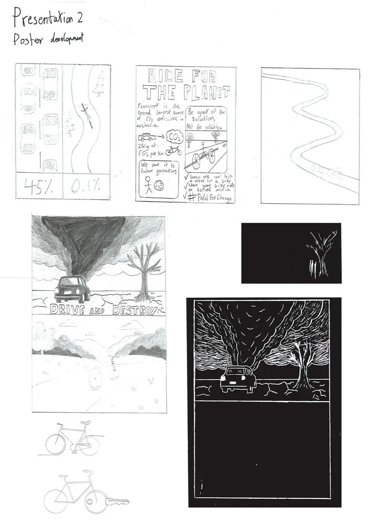 A complementary poster focused on sustainability, targets environmentally minded people and encourages them to consider cycling as a practical and eco-friendly transport option. Bold colours, clear typography, and a central image of a bike make the message immediately clear and motivating. Together, these designs respond to EasyCycle’s goals by providing a practical solution for accessibility and promoting cycling as a sustainable choice.